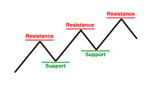 Support & resistance(S/R) ali podpora in upor je orodje, ki ga večina začetnikov podcenjuje pri trgovanju in mu ne posveča dovolj pozornosti. Veliko uspešnih trgovcev se pri trgovanju zanaša samo na S/R orodje ali ga uporablja v kombinaciji z drugimi kazalniki. Pri tej metodi, podpora označuje ceno pri kateri je nakupni pritisk večji od prodajnega, zato tudi nastane območje oz. podporna črta ki deluje kot osnova za dvig cene navzgor. Natančneje, povpraševanje je na teh ravneh večje od ponudbe, zato je gibanje cene navzgor najbolj verjetno. Da bo podpora dobro vidna na grafu je najboljše, da svoje časovne okvirje povečamo oz. spremljamo premike cen na dnevni ali tedenski ravni, kjer premiki niso tako nenadni (kot je vidno na sliki).