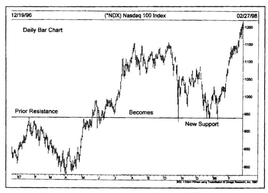 Liniji začneta delovati nasprotno; podporna linija postane uporna in uporna postane podporna. Ta koncept je izjemno pomemben za razumevanje in potrjevanje trenda na trgu.